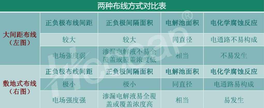 即使存在一定量的泄漏或渗漏量,在一定的引脚间距下,都可以有效阻止PCB腐蚀反应的进行。